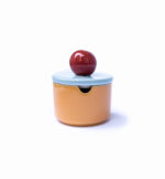 Prosta w formie cukiernica z otworem na łyżeczkę w ściance naczynia. Z uchwytem w kształcie sporej kuli. Wykonana z wysoko palonej masy kamionkowej, szkliwa błyszczące. Kolorowa i radosna, będzie fajnym akcentem na stole!