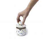 Cukiernica posiada nieoszkliwiony brzeg. Pokrywka także ma nieszkliwiony rant, od dołu. Wynika to z technologii wypału.