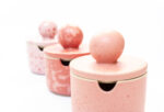 Cukiernica z otworem na łyżeczkę. Lekki szyk retro, pięknie prezentuje się na stole. Wykonana z wysoko palonej masy kamionkowej. Pokryta niezwykłym różowym szkliwem, satynowym – lekko matowym. Bardzo przyjemna w dotyku!