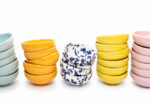Wykonany z wysoko palonej kamionki, pokryta błyszczącym szkliwem dopuszczonym do kontaktu z żywnością. Jeśli brakuje Ci naczynka na skorupki polecam mini miseczki. Są wykonane z tego samego materiału i występują w podobnej palecie barw.