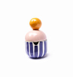 Cukiernica, pojemnik – przeznaczenie tego naczynka jest bardzo szerokie. Ma otwór na łyżeczkę. Duża kula sprawia, że pokrywka jest wygodna do podnoszenia. Odlana z jasnej masy kamionkowej, wysoko spalona. Będzie się pięknie komponowała z innymi kolorowymi naczynkami.