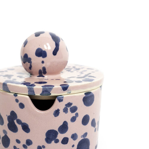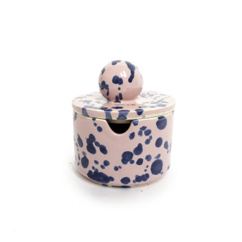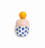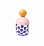 Pojemnik, szkatułka, cukiernica – przeznaczenie tego naczynka jest bardzo szerokie. Duża kula sprawia, że pokrywka jest wygodna do podnoszenia. Odlany z jasnej masy kamionkowej, wysoko spalony. Będzie się pięknie komponował z innymi kolorowymi naczynkami.