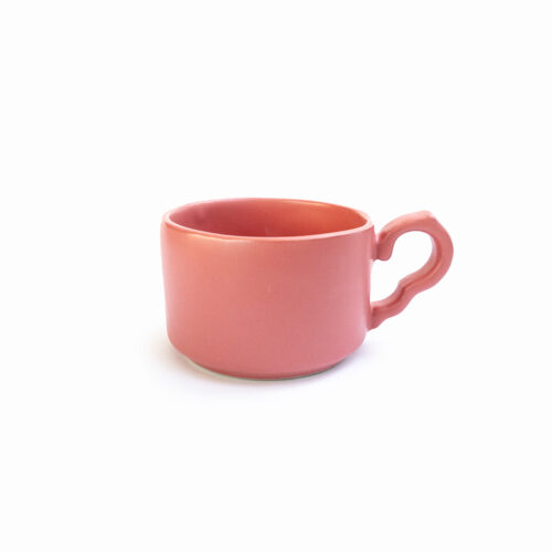 Odlany z jasnej masy kamionkowej, wysoko spalony. Pokryty niezwykłym ciemno różowym szkliwem, satynowym – lekko matowym. Bardzo przyjemny w dotyku!