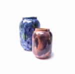 Masa kamionkowa, wysoko spalona, szkliwo w niejednorodnym kolorze (są róże, trochę tonów brzoskiwniowych, szarości i niebieskości, kobalt). Unikat – w takiej konfiguracji szkliw efekt za każdym razem jest inny. Ożywi każde wnętrze!